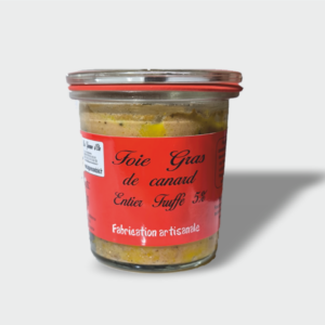Foie gras de canard de canard 61,6%, eau, sel, poivre noir, sucre.
